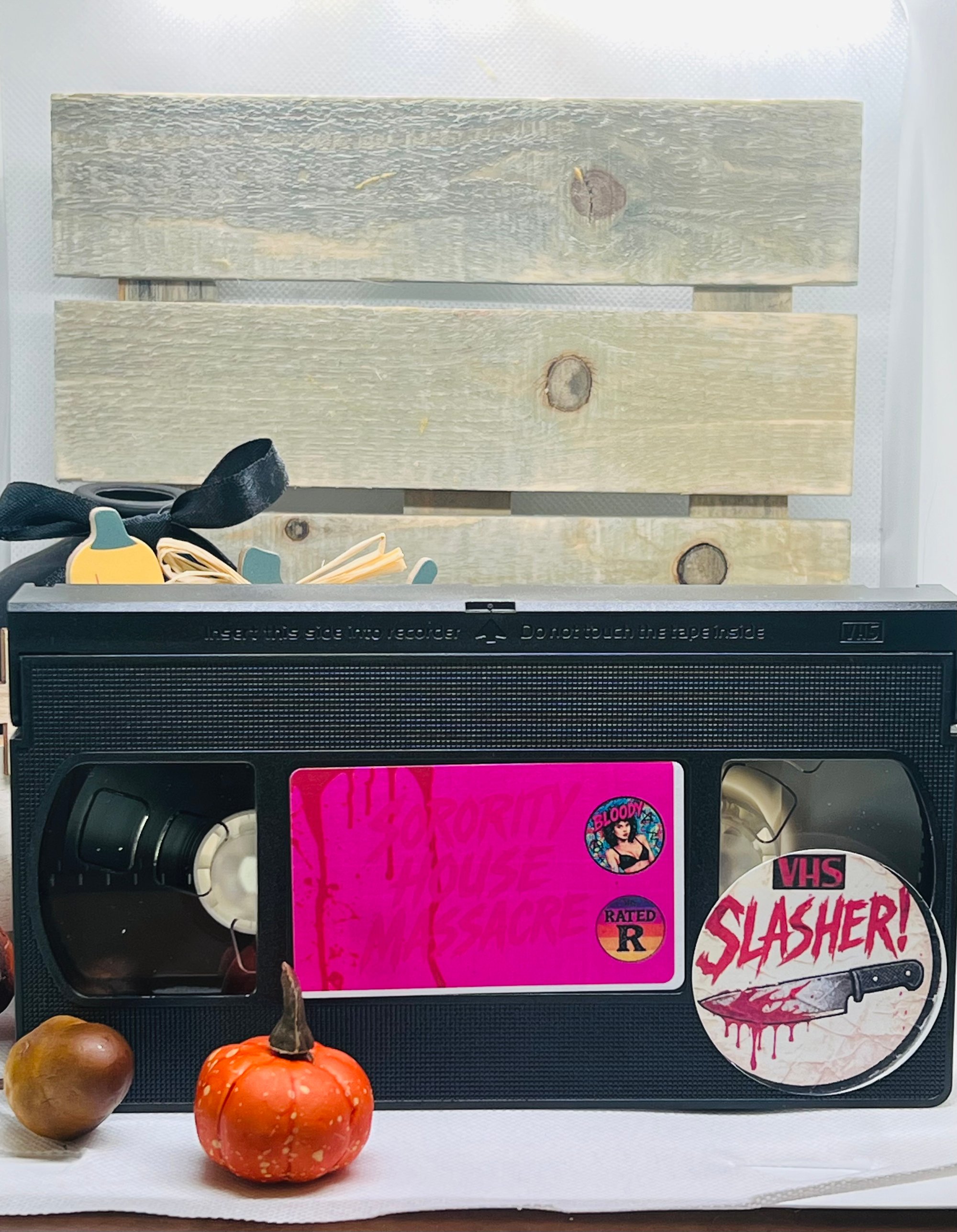 Similar to ELVIRA and JOE BOB BRIGGS, your pal THE VHS WEREWOLF provides commentary and good spooky fun before the movie plays and after. All tapes are gently used but tested for quality to save you a few bucks AND to rescue plastic from landfills.